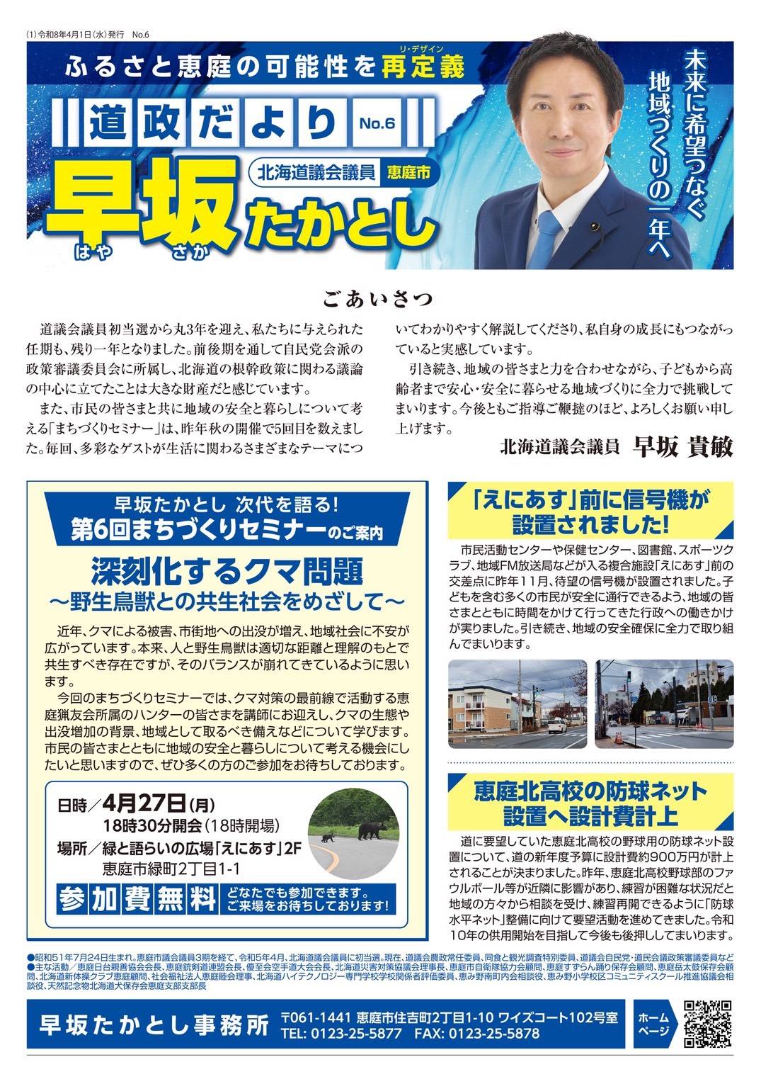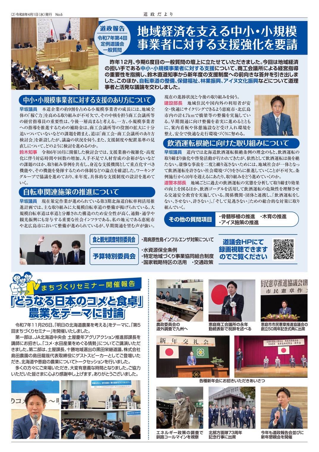 道政だより No.6を発行しました 2026年4月1日 最終更新日時 : 2026年4月1日 hayasakaOfficialsite 4/2恵庭市内の新聞折込・デリバリーにて配布されます ぜひご覧ください